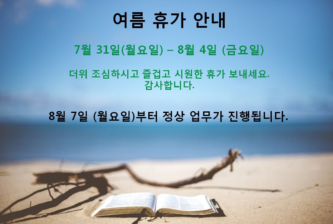 공지여름휴가 공지 / 7월 31일(월요일) ~8월 4일 (금요일) 등록일 : 2017.07.26조회수 : 6590 이전글 2017 POWER-GEN EUROPE 참가 2017.07.11 다음글 추석휴가 / 10월 2일(월요일) ~10월 9일 (월요일) 2017.09.26 목록보기