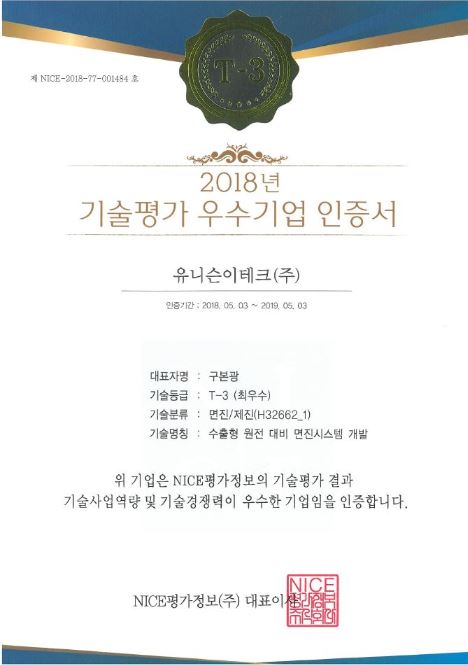 NICE평가정보의 기술평가 우수기업 인증은 기술사업역량 및 기술경쟁력이 우수한 기업임을 증명해주는 인증입니다.