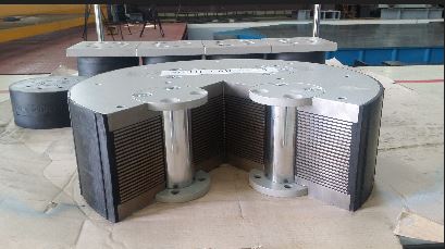 고무시트와 철판http://이 적층돼 일체화된 패드가 지진 발생 시 수평방향의 변형을 수용함과 동시에 장치를 원위치 시키는 중요한 역할을 맡는다.