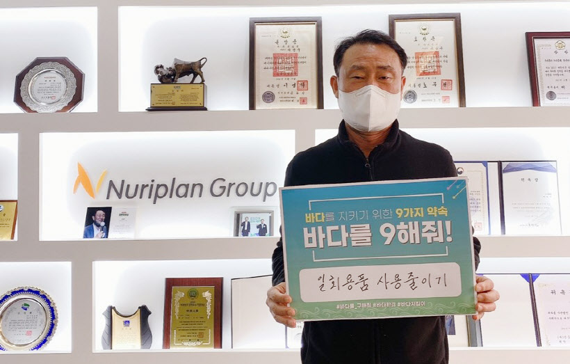 이상우 누리플랜 회장이 '바다를 구해줘!' 캠페인에 동참하고 있다.